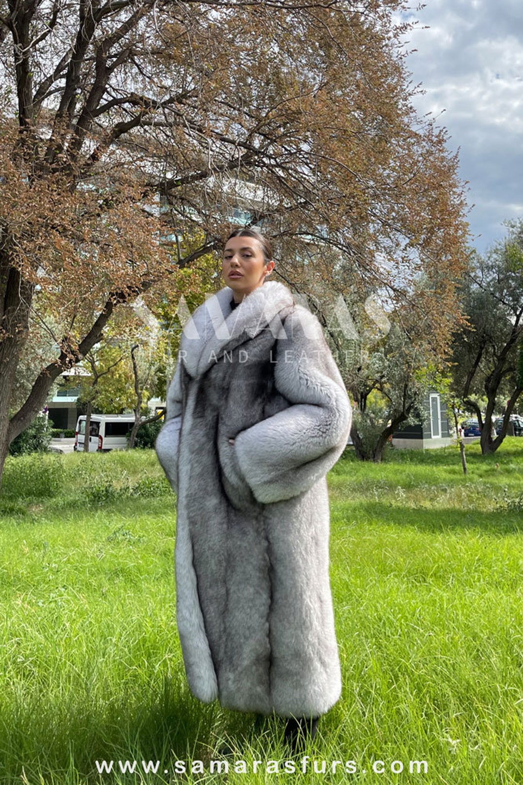 ファーコート ブルーフォックス 日本製/ブルーフォックスファー/カシミヤ混】拘りのシルエット